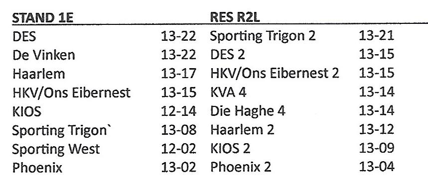 Het tweede heeft zaterdag op overtuigende wijze de titel van R2L bemachtigd en daar viel eigenlijk niets op af te dingen in een poule waarin de andere 7 teams wisselvalligheid in hun uitslagen hadden en het tweede met slechts 2 nederlagen (beide tegen KVA) eigenlijk automatisch kwam boven drijven. En ja als je dan op de eerste plek staat, wil je die ook vasthouden. En dat deed de combinatie van veel routine en een paar youngsters prima. Ook tegen KIOS 2 dat het destijds in Nieuw-Vennep de ploeg van coach Wim nog erg lastig maakte (wel winst 15-11), maar nu kansloos was. Tot 4-3 ging het gelijk op, maar bij het ingaan van de tweede helft was het voordelige verschil al opgelopen tot 4 (10-6).